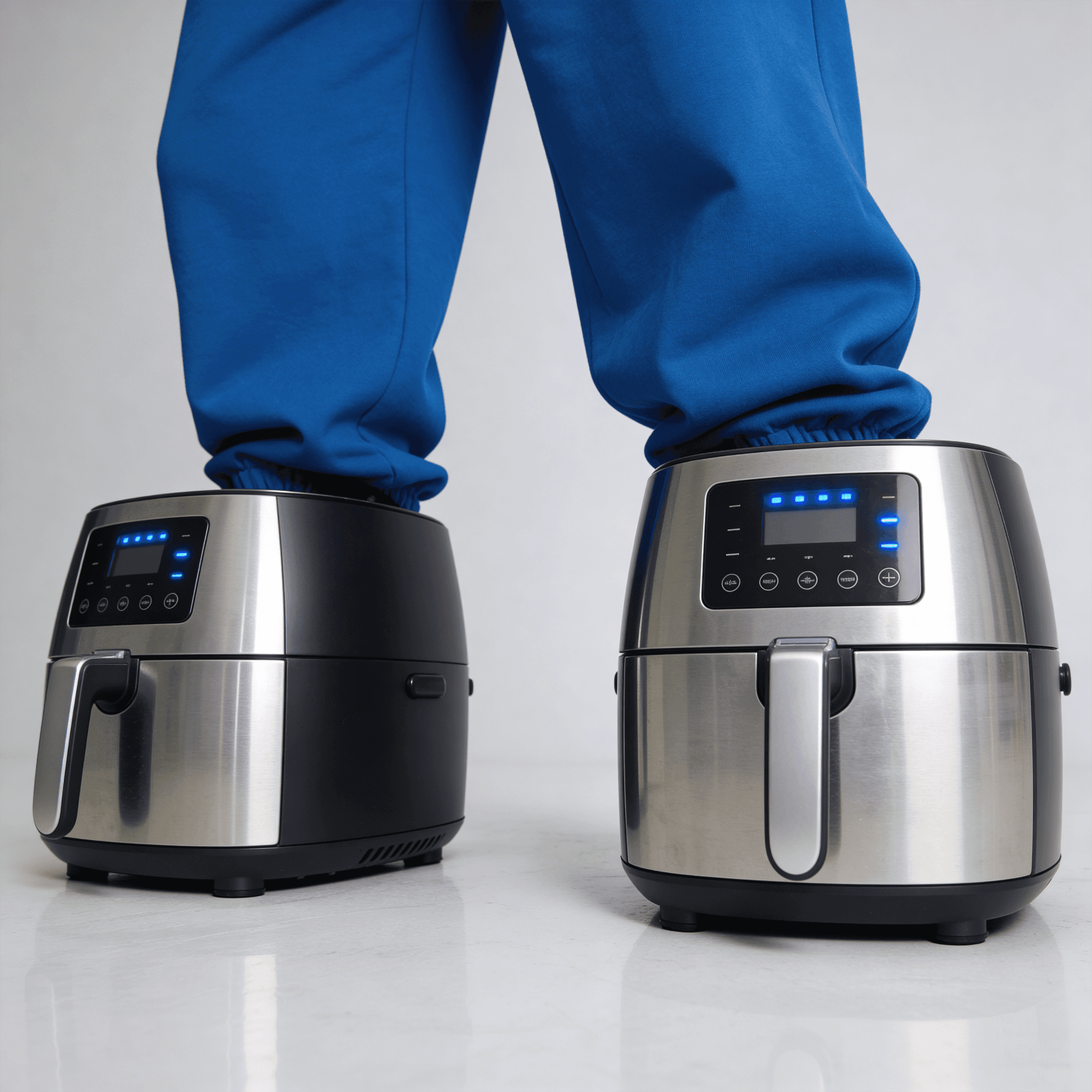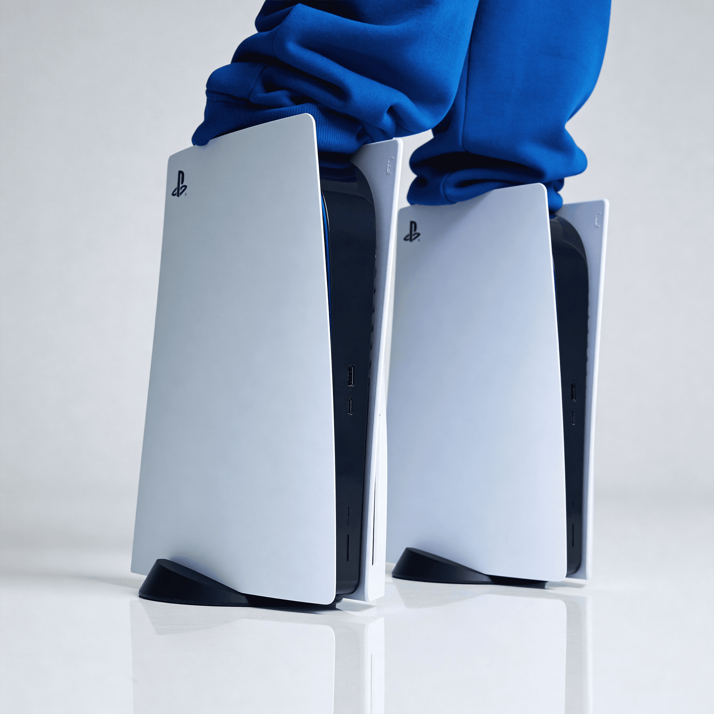 Static and video asset production for an electronics retail campaign, featuring multiple characters within a controlled studio setup